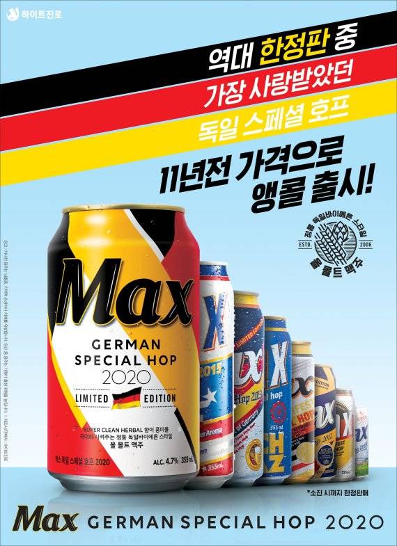 하이트진로는 오는 21일 국내 최초 100% 몰트 맥주 '맥스'의 한정판 '맥스 독일 스페셜 호프 2020'(사진)을 출시한다고 19일 밝혔다.