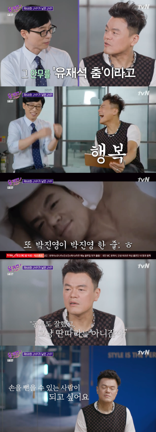 '유퀴즈' 박진영이 밝힌 #유재석춤 #비 '깡' #비닐바지 #남친짤 [종합]