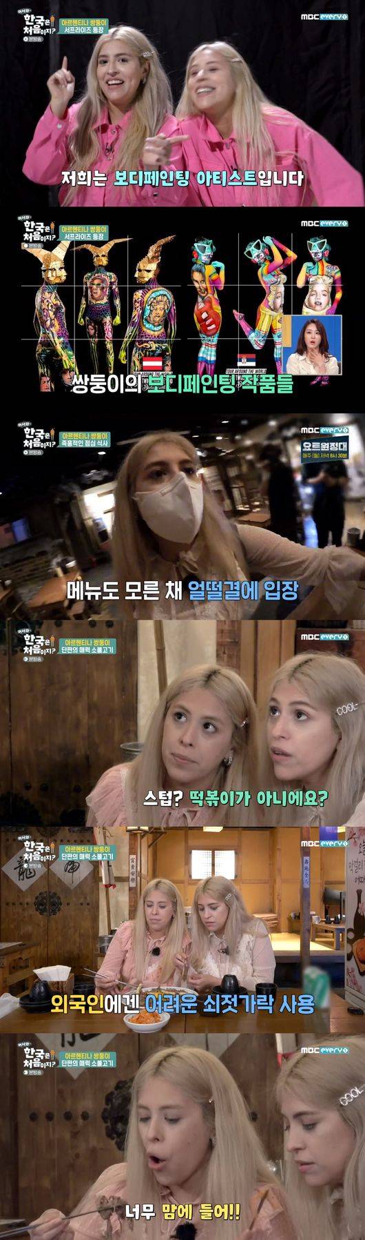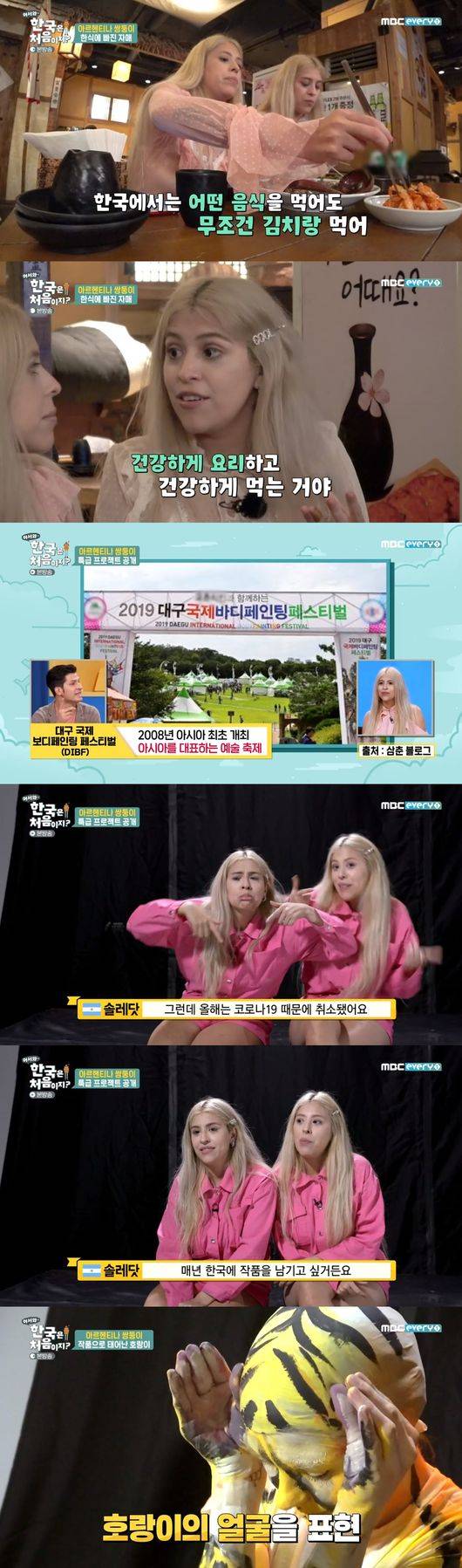 20일에 방송된 MBC에브리원 ‘어서와 한국은 처음이지?’에서는 아르헨티나에서 온 보디페인팅 아티스트 쌍둥이 자매 플로렌시아와 솔레닷이 등장했다.
