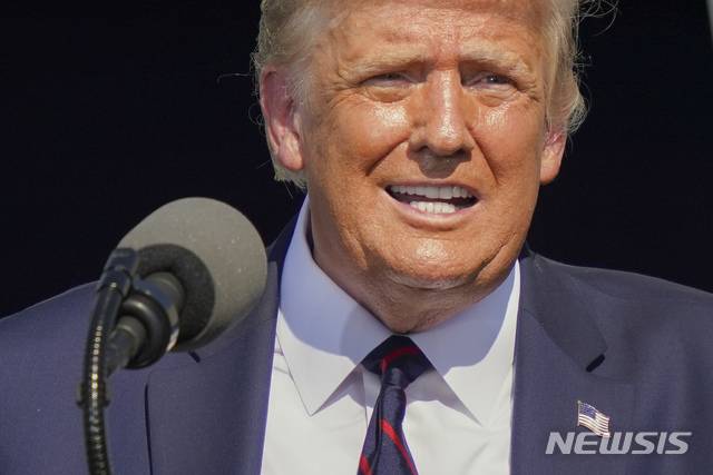 [올드포지=AP/뉴시스]도널드 트럼프 미국 대통령이 20일(현지시간) 미 펜실베이니아 올드 포지에서 열린 선거 유세 중 연설하고 있다. 트럼프 대통령은 연설 중 자국 내 코로나19 상황을 말하면서 불쑥 "한국, 끝났다 끝났어"라고 말하며 "어제 (한국에서) 대규모 발병이 있었다"라고 발언했다. 그는 이어 "우리는 위대한 일을 했다"라며 자화자찬했다. 2020.08.21.