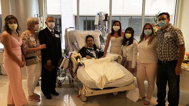 신랑은 인공호흡기가 달린 병상에 누운 채 신부를 맞이합니다.