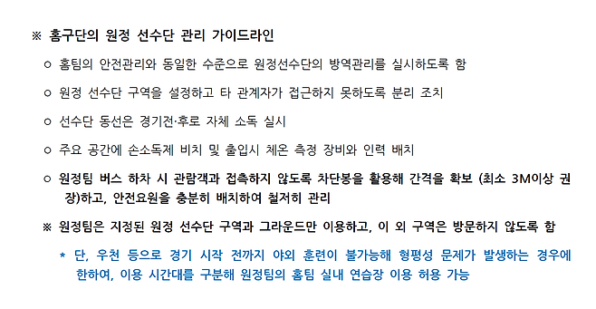 하지만 KBO는 세 차례나 코로나19 통합 매뉴얼을 발표하는 등 코로나 확산 방지를 위해 노력해 왔습니다. 매뉴얼 가운데 구단의 원정 선수단 가이드라인'을 보면 '원정팀 버스 하차 시 관람객과 접촉하지 않도록 차단봉을 활용해 간격을 확보'하는 등 철저한 코로나 감염 예방을 강조하고 있는 상황이어서 논란이 예상됩니다.