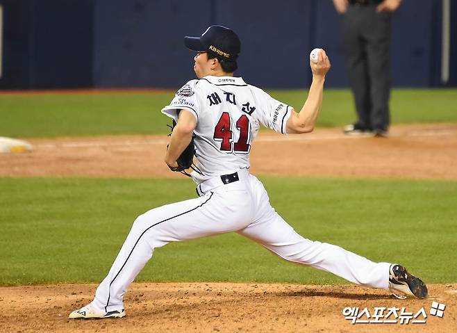 [엑스포츠뉴스 잠실, 윤다희 기자] 21일 오후 서울 송파구 잠실야구장에서 열린 ‘2020 신한은행 SOL KBO 리그’ 롯데 자이언츠와 두산 베어스의 경기, 8회초 1사 1루 두산 채지선이 역투하고 있다.