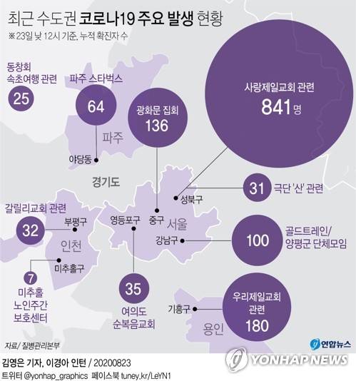 [그래픽] 최근 수도권 코로나19 주요 발생 현황