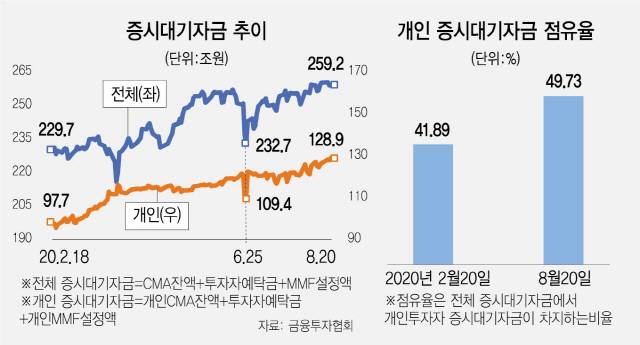 증시 대기 자금 260조..개인이 '절반'