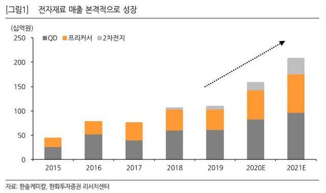 이 연구원은 "한화케미칼의 3분기 실적으로 매출액 1574억원, 영업이익 452억원을 전망한다"며 "프리커서, 퀀텀닷 소재와 같은 전자재료 매출액이 전분기 대비 18.6% 증가할 것으로 예상된다는 점이 긍정적"이라고 말했다.