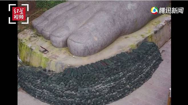 ▲ 러산대불에 쌓은 모래주머니