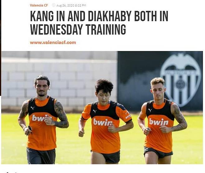 사진은 이강인(가운데)의 팀 훈련 복귀 소식을 전한 발렌시아. 2020.8.27