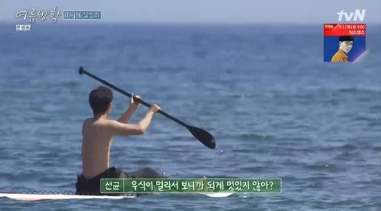 최우식은 태닝 오일을 발라 태닝을 하기도 했다. 이선균은 보트를 타는 최우식을 발견하고 "우식이 멀리서 보니까 되게 멋있다"고 감탄했다.