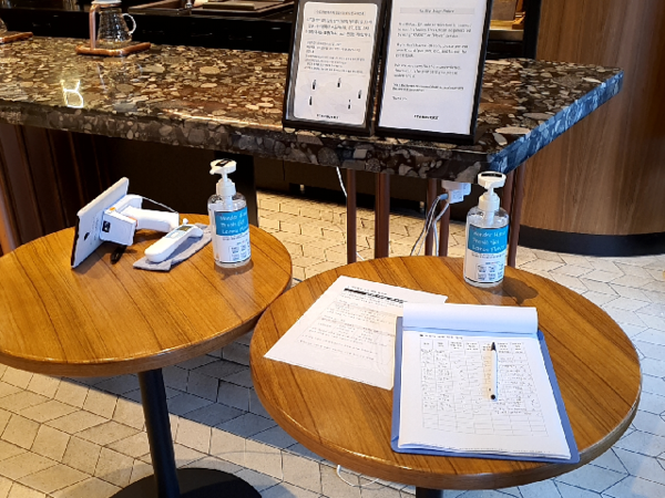 매장에 들어선 고객은 직원 안내에 따라 네이버, 카카오톡 등에서 OR코드 발급 받아 제시하고, 체온을 측정해야 한다. 측정 결과 정상 체온 범위 내에 든 고객만이 손소독제를 사용한 뒤 주문 대기 줄에 설 수 있다.