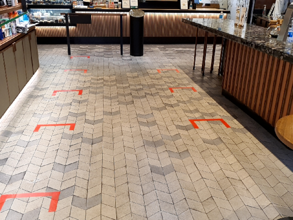주문은 다른 고객과 1m 거리두기를 유지한 채 진행된다. 서대문구 한 스타벅스 매장에서는 직원이 고객 간 1m 거리두기가 유지될 수 있도록 안내했고, 또 다른 스타벅스 매장에는 아예 1m 간격으로 붉은색 테이프가 바닥에 붙어있었다.