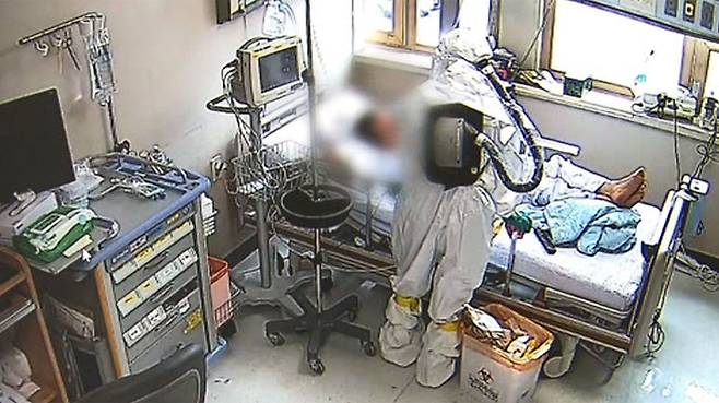 세브란스 병원의 음압 격리병동, 세 명의 코로나19 위·중증 환자가 치료받고 있습니다.