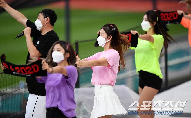 2020 KBO리그 KT 위즈와 롯데 자이언츠의 경기가 1일 수원kt위즈파크에서 열렸다. KT 치어리더가 열띤 응원을 펼치고 있다. 수원=박재만 기자 pjm@sportschosun.com/2020.09.01/