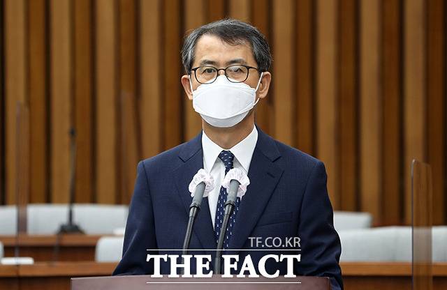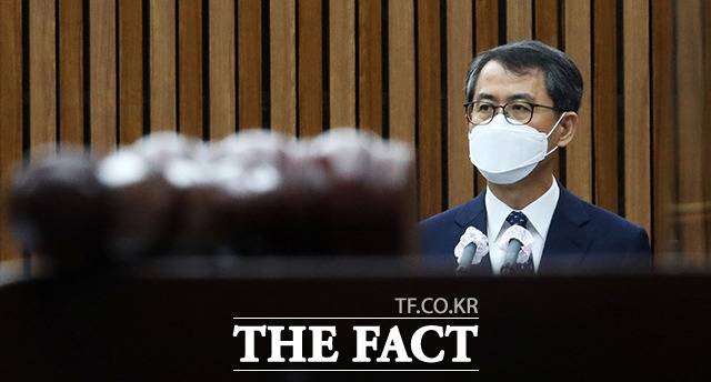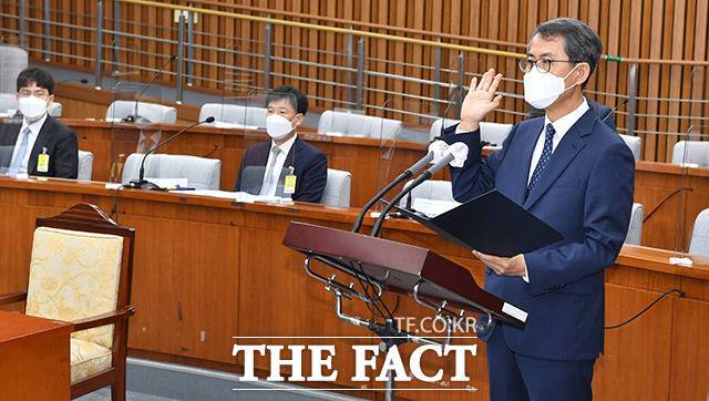 [더팩트ㅣ국회=배정한 기자] 이흥구 대법관 후보자가 2일 오전 서울 여의도 국회에서 열린 인사청문회에 출석해 선서를 하고 있다.