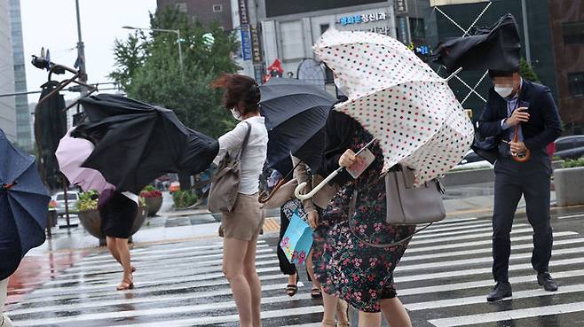 '회사 가야죠' 비바람 뚫고 출근하는 직장인들