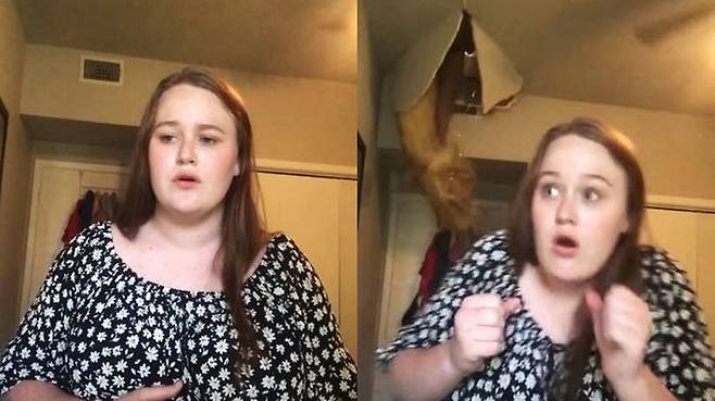 최근 리즈 씨는 다가오는 오디션을 대비해 뉴욕에 있는 부모님 집으로 이사한 뒤 노래 연습에 매진해왔습니다. 그런데 하루는 노래 부르는 자신의 모습을 점검하기 위해 방 안에서 카메라를 켰다가 황당한 사고를 겪었습니다. 오디션 곡으로 정한 뮤지컬 '헤더스' 삽입곡을 감미롭게 부르던 그때, 갑자기 굉음과 함께 방 지붕에 커다란 구멍이 뚫려버린 겁니다.