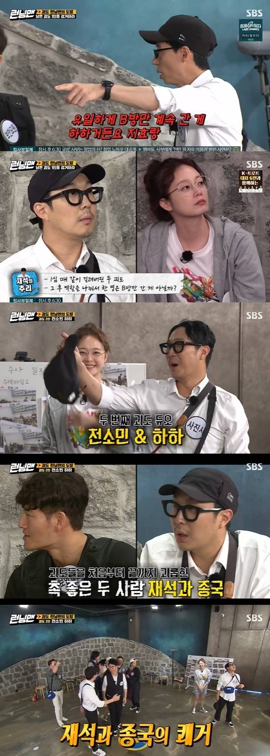 윤석호, 지석진, 표창원 등이 용의 선상에 오른 가운데, 김종국과 유재석은 계속 B방에 들어갔던 하하를 의심했다.