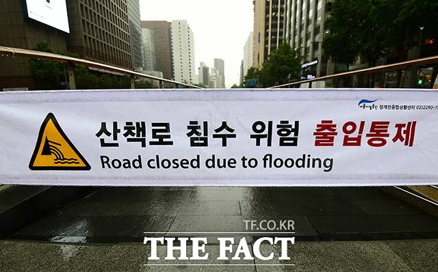 [더팩트ㅣ이동률 기자] 제10호 태풍 '하이선 (HAISHEN)'의 영향으로 전국에 비가 내린 7일 오전 서울 중구 청계천 일대가 출입이 통제된 모습을 보이고 있다.