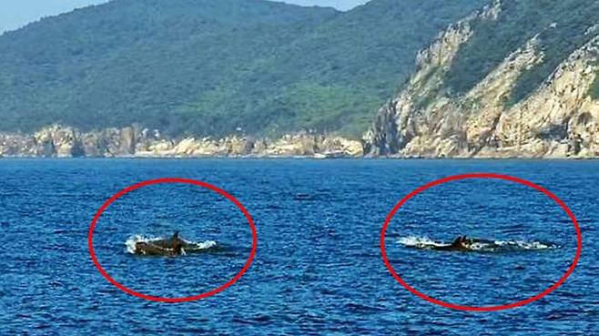 다도해해상국립공원 거문도 일대에서 최초로 국제 보호종 흑범고래 무리가 발견됐습니다.