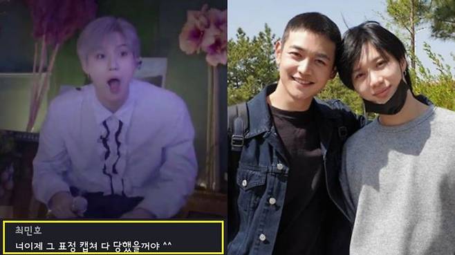 "역솔남(역대급 솔로 남가수)", "태민아 보고싶어" 등 아낌없이 애정을 표현하던 민호는 놀란 표정을 지은 태민에게 "너 이제 그 표정 캡처당했을 거야"라는 유쾌한 댓글을 남기기도 했는데요, 마지막으로 "태민아 방송 잘해. 형은 이제 폰 낸다. 이번 앨범 대박 내자. 힘내, 건강 잘 챙기고"라는 인사를 전했습니다.