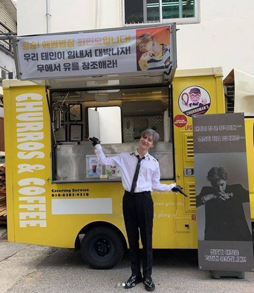 지난해 4월 해병대 교육훈련단으로 입소해 국방의 의무를 이행 중인 민호는 앞서 태민의 뮤직비디오 촬영장에 커피차를 선물하기도 했습니다.