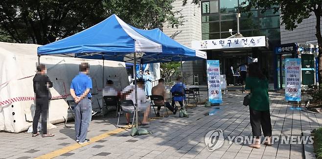 (서울=연합뉴스) 류영석 기자 = 국내 신종코로나바이러스 감염증(코로나19) 신규 확진자가 155명을 기록한 10일 오전 서울 노원구보건소 코로나19 선별진료소에서 시민들이 검사를 받기 위해 줄을 서 있다. 2020.9.10