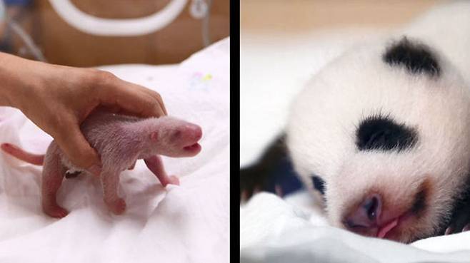 막 태어났을 때는 판다치고는 너무 작은 체형과 핑크빛 외모가 화제가 됐었는데요.