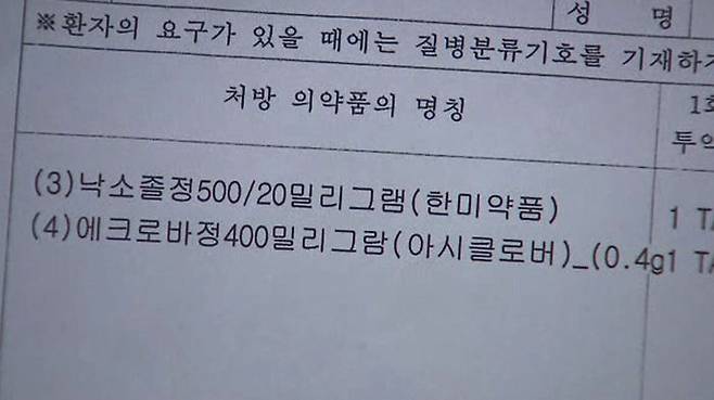 다른 병원을 찾아 확인해보니 처방받은 약은 대상포진 치료에 사용되는 항바이러스제 '아시클로버'였습니다.
