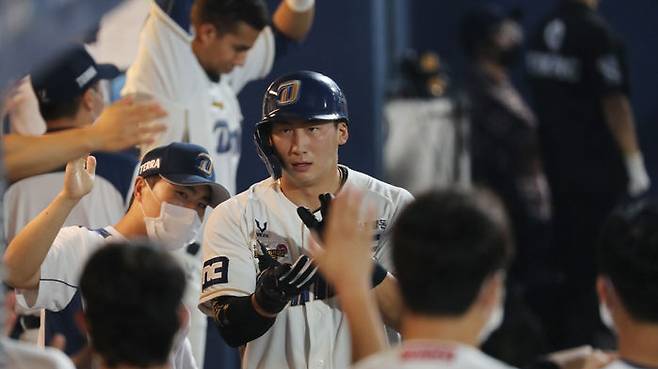 그러나 주루 중 햄스트링에 통증을 느꼈고, 3회 타석에서 김성욱으로 교체됐습니다.