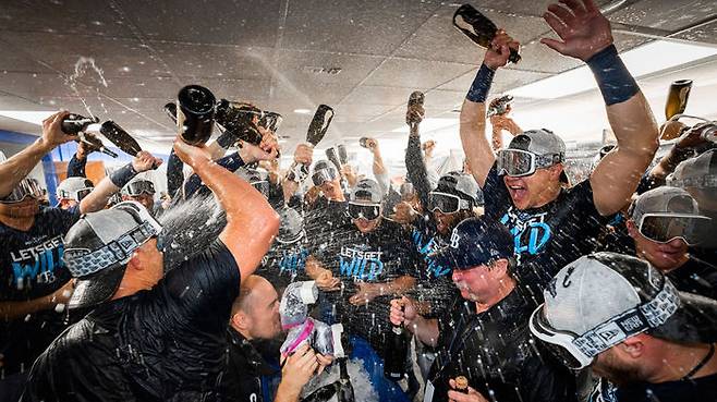 미프로야구 메이저리그에선 와일드카드 티켓만 얻어도 선수들이 물안경을 끼고 서로에게 샴페인과 맥주를 뿌려대며 포스트시즌 진출을 자축하는 광경이 펼쳐집니다.
