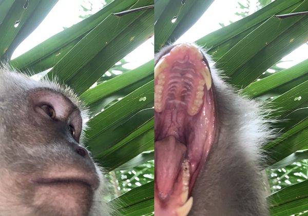 재크리드 씨 방 창문을 통해 들어와 휴대전화를 훔쳐 간 것으로 추정되는 범인은 바로 이 원숭이였습니다. 원숭이는 휴대전화를 가지고 돌아다니며 나무, 풀숲 등 다양한 풍경을 배경 삼아 '셀카'를 찍어 놓았습니다. 심지어 다소 충격적인 동영상까지 남겨 놓았는데요, 원숭이가 휴대전화를 입안에 넣었다가 빼내 이리저리 관찰하는 장면이 생생하게 담겼습니다.