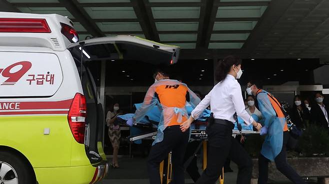 재판부는 곧바로 법정에서 방청객들을 퇴정시켰고, 정 교수는 출동한 119 구조대에 의해 들것에 실려 법원을 떠났습니다.
