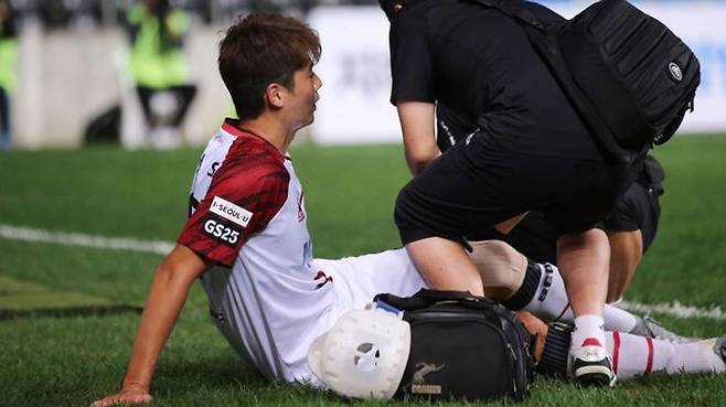 상대 선수의 견제도 딱히 없던 가운데 표정이 일그러지며 스스로 제동을 건 그는 그라운드 밖으로 볼을 차낸 뒤 팀 의무진과 함께 상태를 점검했고, 결국, 더 뛸 수 없는 것으로 판단돼 후반 19분 정한민과 교체됐습니다.