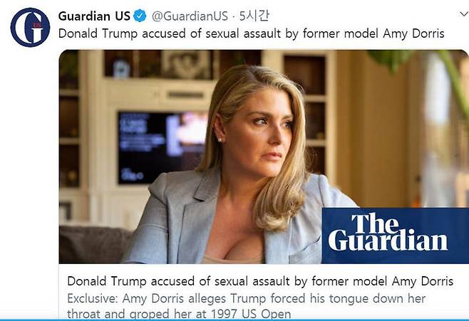 전직 모델인 에이미 도리스는 현지시간 어제(17일) 영국 일간 가디언과의 인터뷰를 통해 트럼프 대통령과의 사이에서 발생한 일을 털어놨습니다.