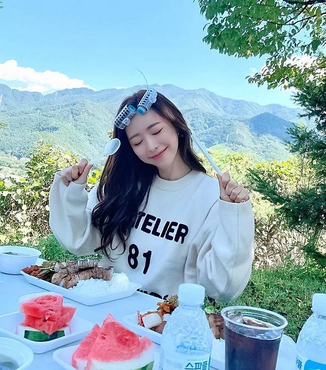 사진 속에는 촬영 현장에서 식사를 즐기는 홍수아의 모습이 담겼다. 홍수아는 헤어롤로 앞머리를 만 채 미소짓고 있다. 홍수아의 청순한 미모가 시선을 사로잡는다.