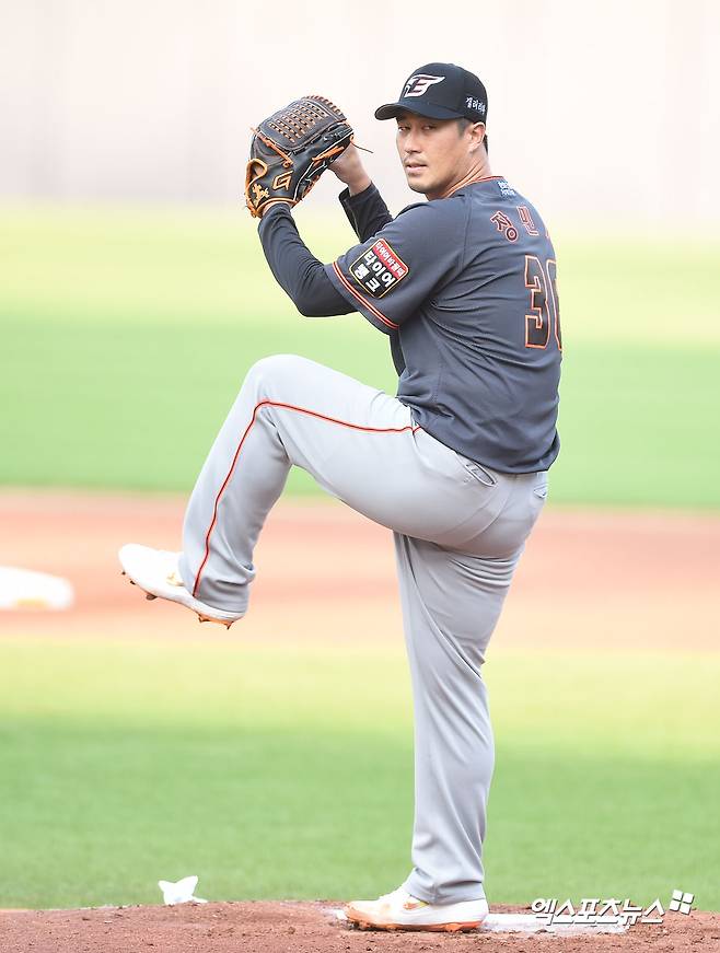 [엑스포츠뉴스 광주, 김한준 기자] 19일 오후 광주-기아 챔피언스필드에서 열린 ‘2020 신한은행 SOL KBO 리그’ 한화 이글스와 KIA 타이거즈의 경기, 1회말 한화 선발투수 장민재가 공을 힘차게 던지고 있다.