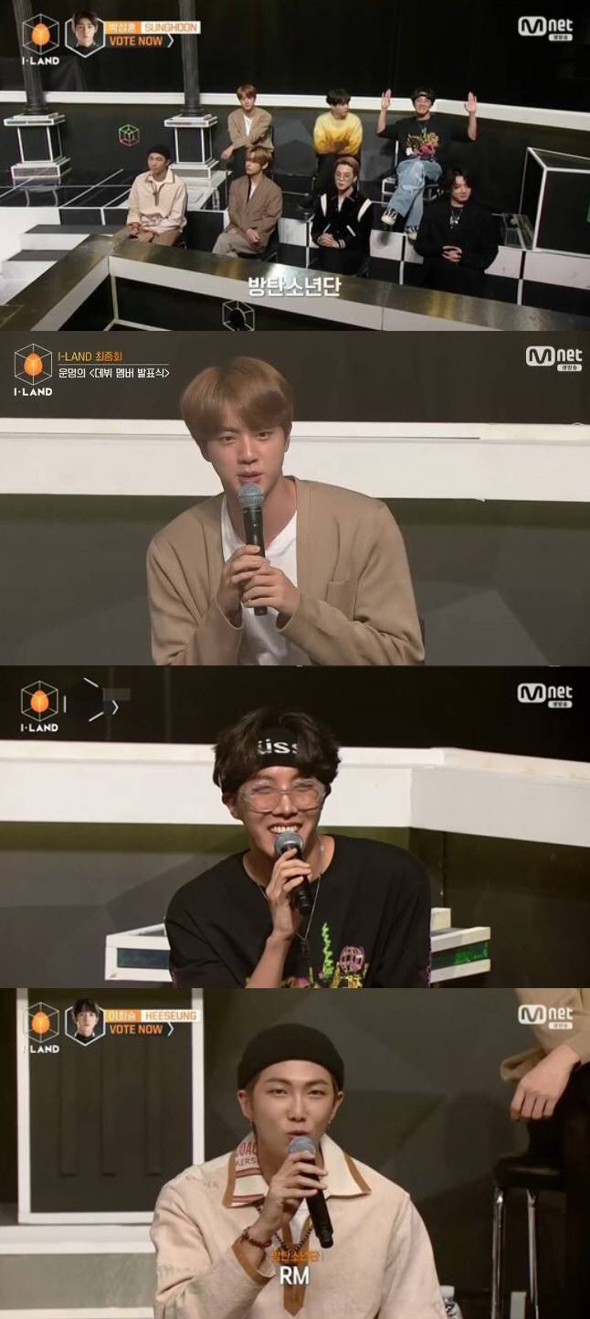 지난 18일 Mnet 서바이벌 서바이벌 오디션 프로그램 '아이랜드' 마지막회에서는 빅히트엔터테인먼트 소속인 방탄소년단과 투모로우바이투게더가 참석한 가운데, 최종 멤버 발표회가 공개됐다.