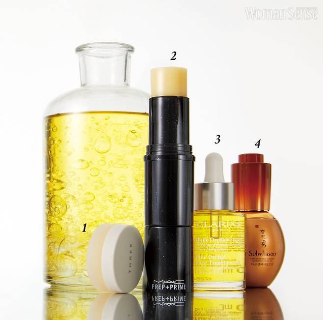 3 클라랑스 블루 오키드 페이스 트리트먼트 오일 건조한 피부의 수분 부족을 해결해주는 페이스 오일로 100% 식물 추출 성분이 피부의 유·수분 밸런스를 맞춰준다. 30ml 6만9천원.