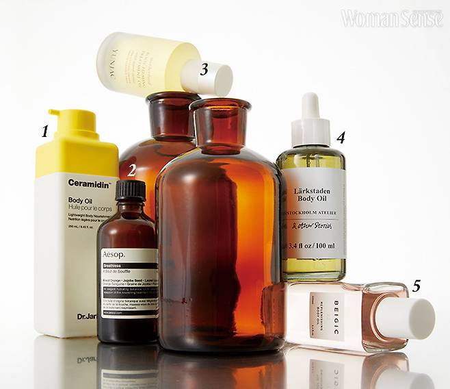 5 베이지크 리플레니싱 바디 오일 무겁지 않은 토닉 오일 제형이 피부에 빠르게 흡수돼 잔여감 없이 산뜻하게 마무리되는 오일로 탄력 있는 보디 피부를 만드는 데 도움을 준다. 100ml 5만6천원.