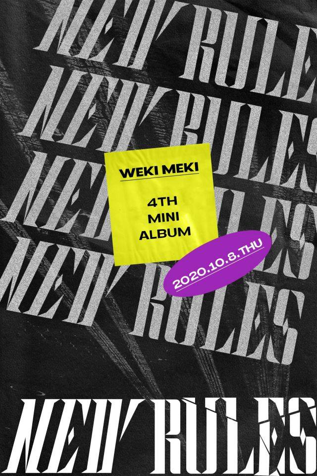 거칠고 강렬한 분위기가 느껴지는 이미지는 위키미키의 네 번째 미니앨범 제목인 ‘NEW RULES’(뉴 룰스)의 로고가 시선을 강탈한다. 이와 대조적으로 컴백일인 10월 8일이 적힌 네온 컬러의 스티커는 위키미키의 밝고 파워풀한 에너지를 연상시킨다.