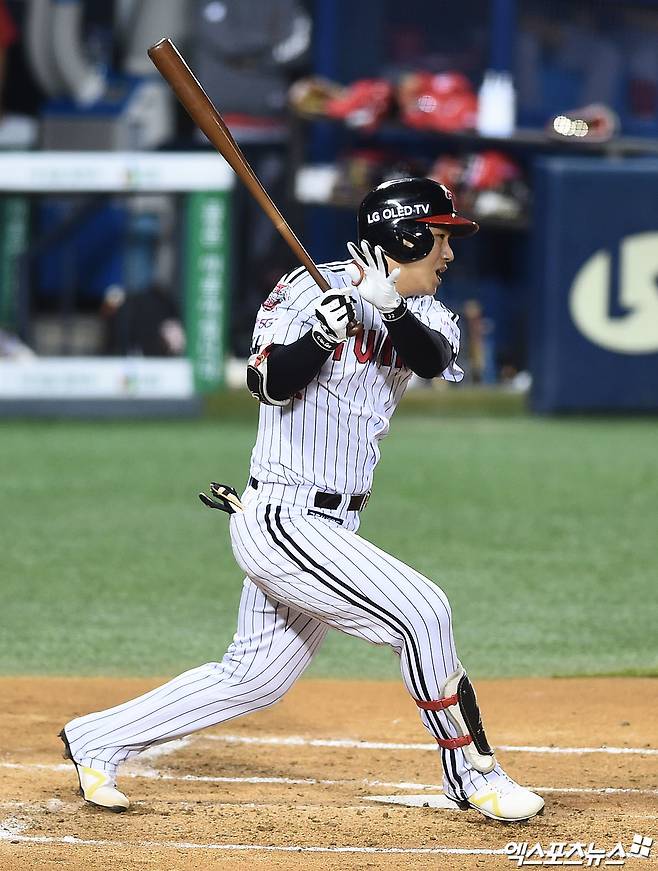 [엑스포츠뉴스 잠실, 박지영 기자] 22일 오후 서울 송파구 잠실야구장에서 열린 '2020 신한은행 SOL KBO리그' SK 와이번스와 LG 트윈스의 경기, 2회말 1사 LG 이천웅이 병살타를 때려내고 있다.