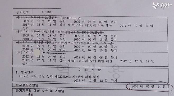 앤코래의 등기이사로 올랐던 영국 국적 세브킷 센서는 미국 당국에 수배된 투자사기 용의자입니다. 그는 조세도피처에 사모펀드를 만들었다는 뉴스의 주인공으로 등장하기도 했습니다. 또 다른 이사인 스웨덴인 야콥 킨데는 영국 기업등록소에 40여 개 법인의 이사로 올라와 있는 전형적인 유령회사 프록시(Proxy, 대리인)입니다. 영국인 안토니 찰스 에릭 에만 나이트 또한 수십 개 법인의 임원으로 올라와 있습니다. 그도 프록시일 가능성이 높습니다.