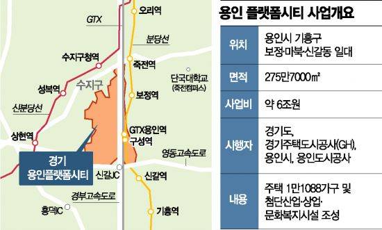 용인플랫폼시티 사업은 용인시 기흥구 보정ㆍ마북ㆍ신갈동 일대 약 275만7000㎡에 5조9646억여원을 투입해 추진하는 도시개발사업으로, 첨단산업과 상업, 주거, 문화ㆍ복지 기능을 갖춘 경제자족도시를 조성하는 프로젝트다. 사업에는 경기도와 경기도시공사(GH), 용인시, 용인도시공사가 공동사업시행자로 참여하고 있다. 연내 도시개발구역지정 및 개발계획 승인을 거쳐 2023년 착공할 계획이다. 특히 정부는 지난 8ㆍ4 공급대책을 통해 용인플랫폼시티에서 3300가구의 주택을 사전청약 물량으로 내놓겠다고 밝혔었다. 이는 단일 사업지에서 공급되는 사전청약 물량 중 두 번째로 많은 것이다.
