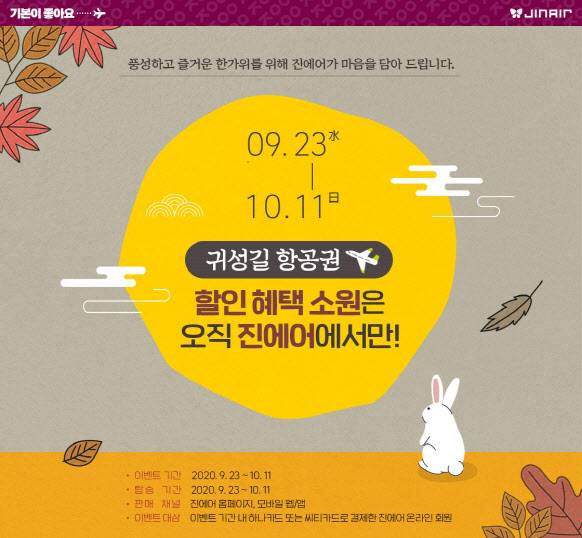 한편 진에어는 추석 당일인 10월 1일 국내선 일부 항공편에서 기내 이벤트를 진행한다.