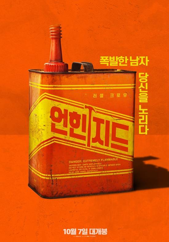 [엑스포츠뉴스 김영아 인턴기자] 영화 '언힌지드'(감독 데릭 보트)가 석유통과 성냥, 그리고 한 남자의 비주얼이 담긴 일러스트 포스터를 공개해 시선을 모으고 있다.