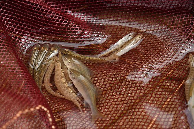처음엔 3마리, 다시 6~7마리, 또다시 같은 어종의 물고기가 나왔다. 방인철 교수가 최종 확인한 결과 흰수마자였다. 우리나라에만 사는 고유종이자 멸종위기종으로 채집해서는 안 되는 종이기에 사진만 찍고 곧바로 방류했다.