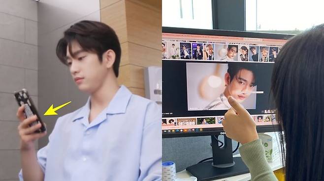 그런데 해당 영상에서 팬들의 시선을 사로잡은 뜻밖의 물건이 있었는데요, 영상에서 약 2초 정도 등장한 진영의 휴대전화 케이스였습니다.