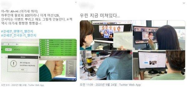 그러면서 "회사는 잊어도 '아가새'는 잊지 않겠다"는 손글씨를 써서 업로드하고, 갓세븐 전곡 듣기 챌린지 사진을 인증하는 등 유쾌한 반응을 보였습니다. 또 "우린 지금 미쳐있다"며 업무 시간에 갓세븐을 찾아보는 직원들의 사진을 올려 웃음을 더하기도 했습니다.