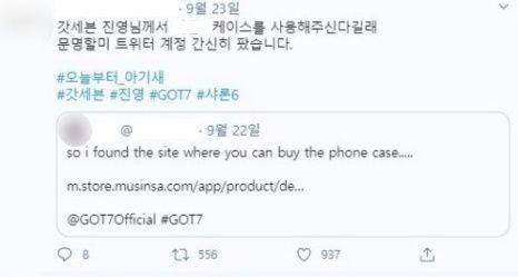 그룹 갓세븐 멤버 진영 덕분에 높은 매출을 기록한 한 휴대전화 케이스 업체가 보인 반응이 웃음을 자아냈습니다.