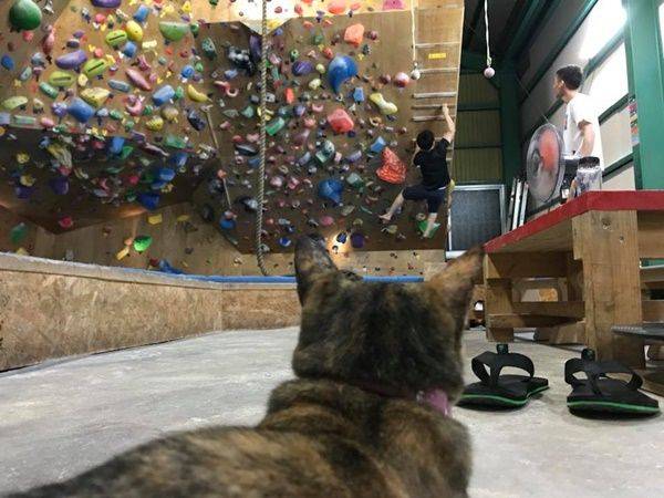 볼바카 체육관장인 미츠루 고안 씨는 지난 2016년 8월 체육관 앞에서 떨고 있는 생후 2개월 라라를 발견해 입양했습니다. 이후 라라는 빠르게 체육관 생활에 적응했는데요, 방문객들에게 '야옹'이라고 살갑게 인사하는 것은 물론 볼더링에도 관심을 보였습니다.
